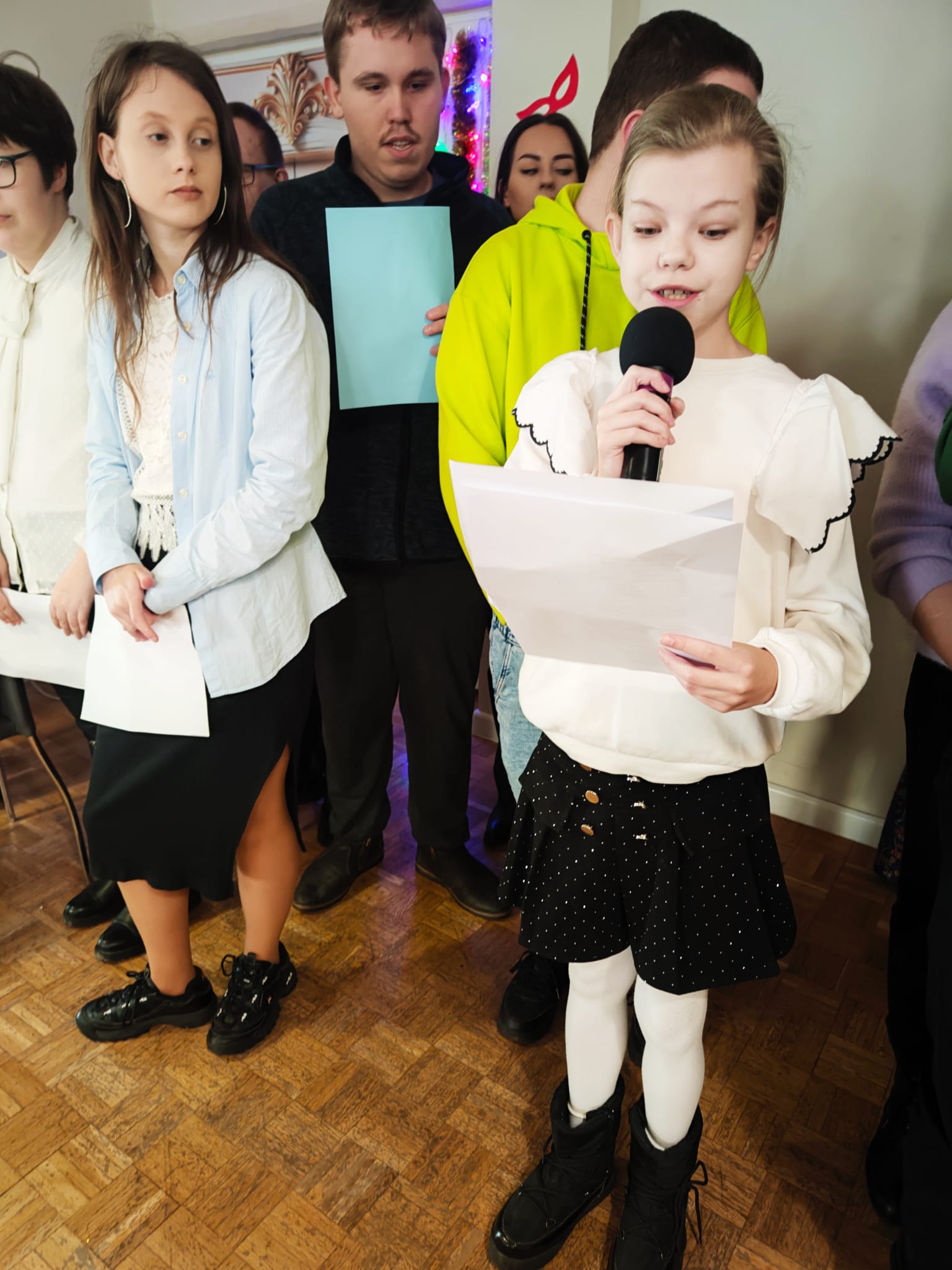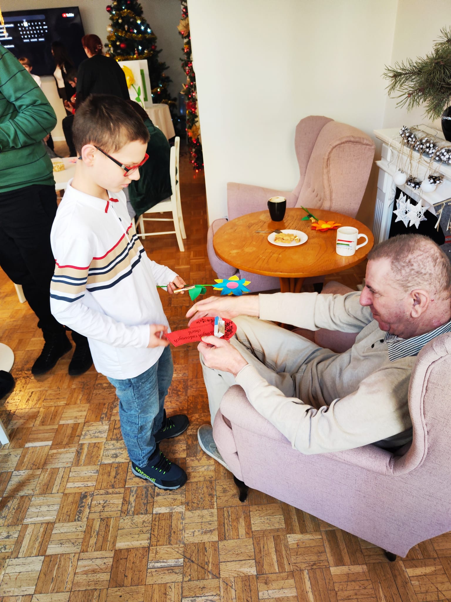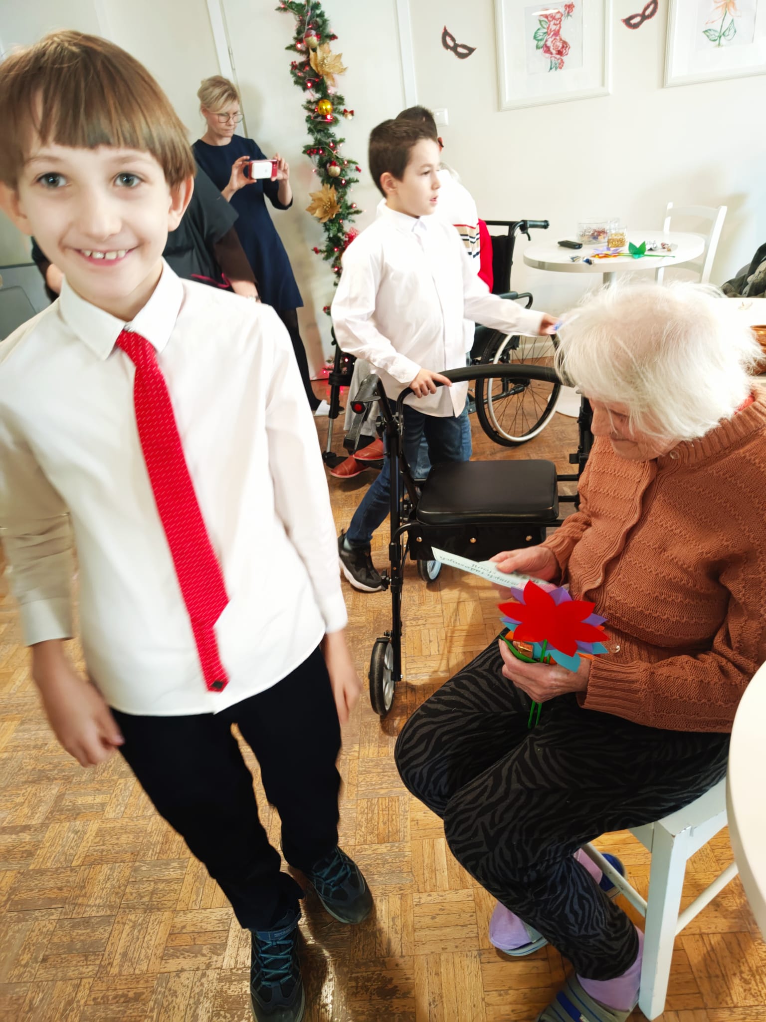 Dla mieszkańców ośrodka uczniowie przygotowali wyjątkowy program artystyczny, w którym nie zabrakło pięknych wierszy, nastrojowych piosenek oraz muzyki na żywo. Dźwięki gitary wypełniły pomieszczenie, tworząc ciepłą i radosną atmosferę. Seniorzy z ochotą włączali się do wspólnego śpiewania, co dodawało wydarzeniu niezwykłego uroku.