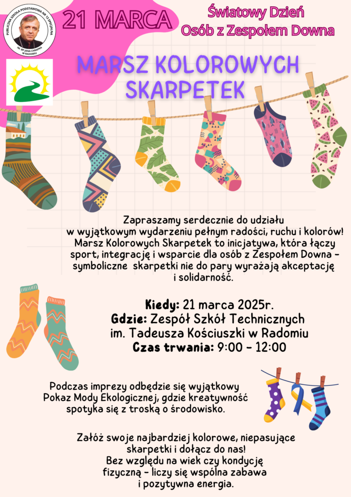 Zapraszamy do udziału w Marszu Kolorowych Skarpetek, który łaczy w sobie sport, integrację i wsparcie dla osób z Zespołem Downa.