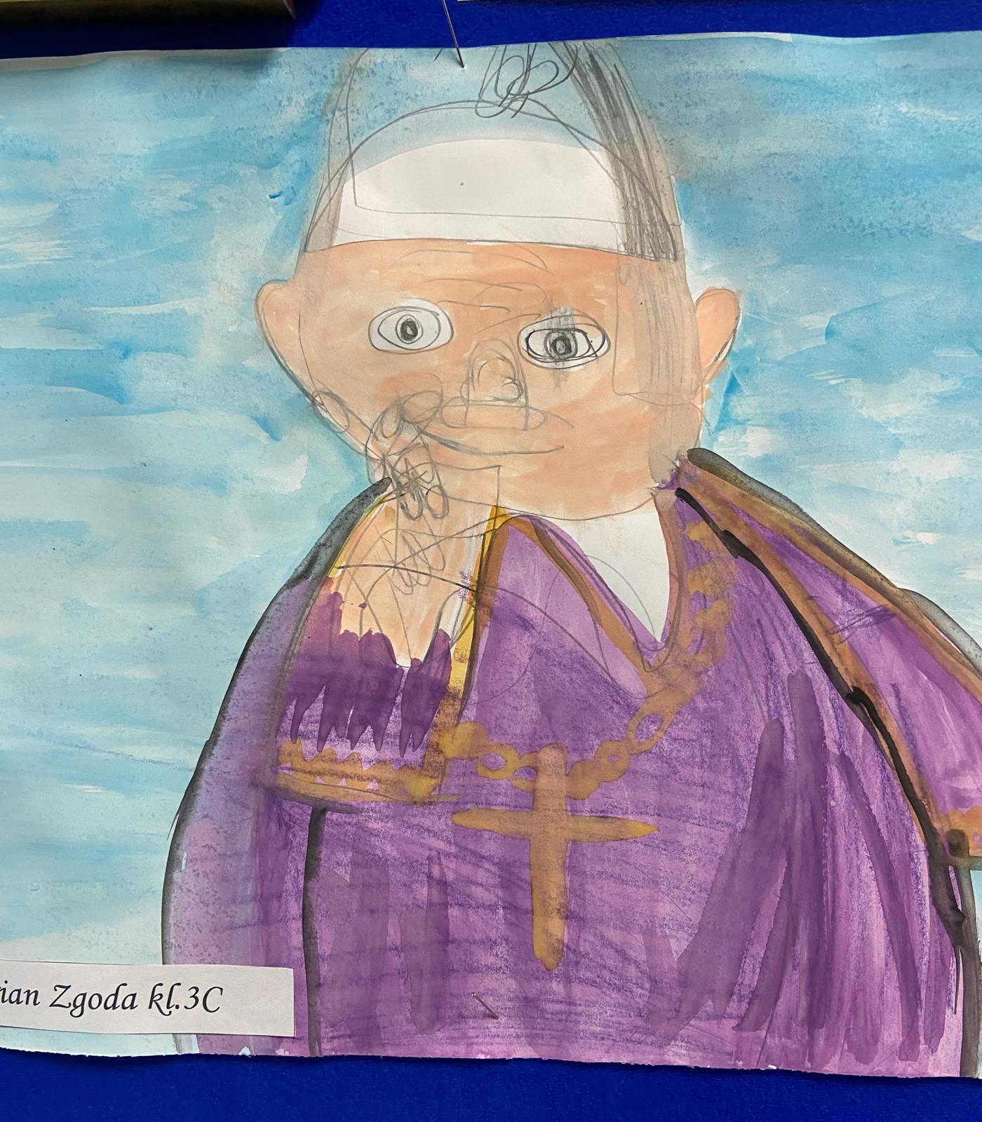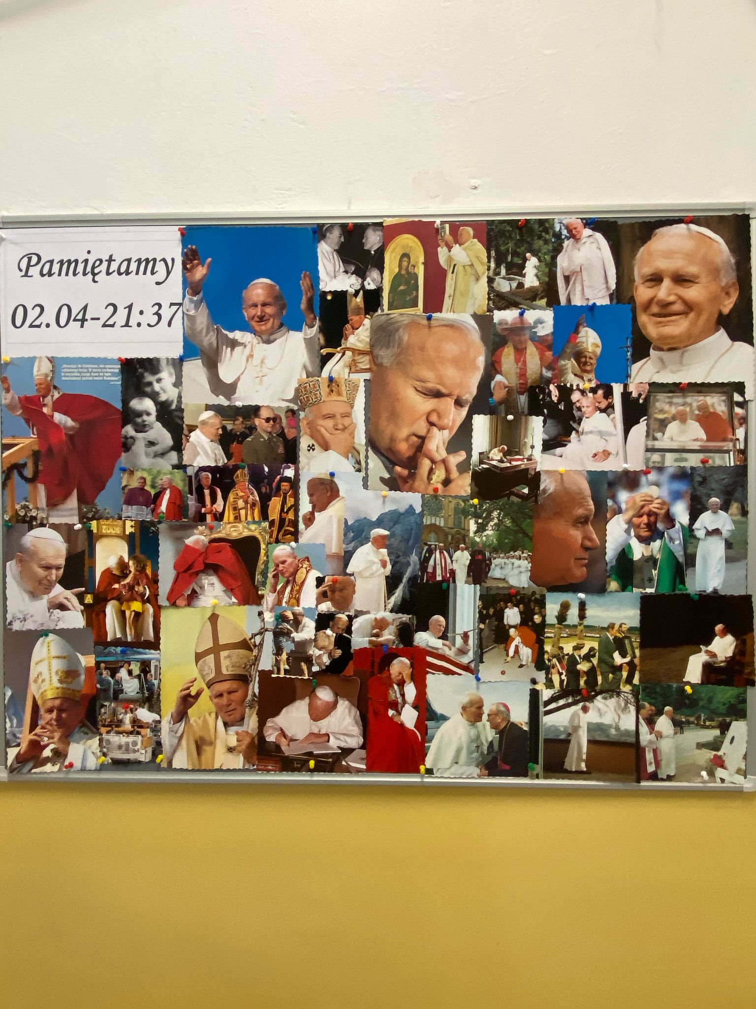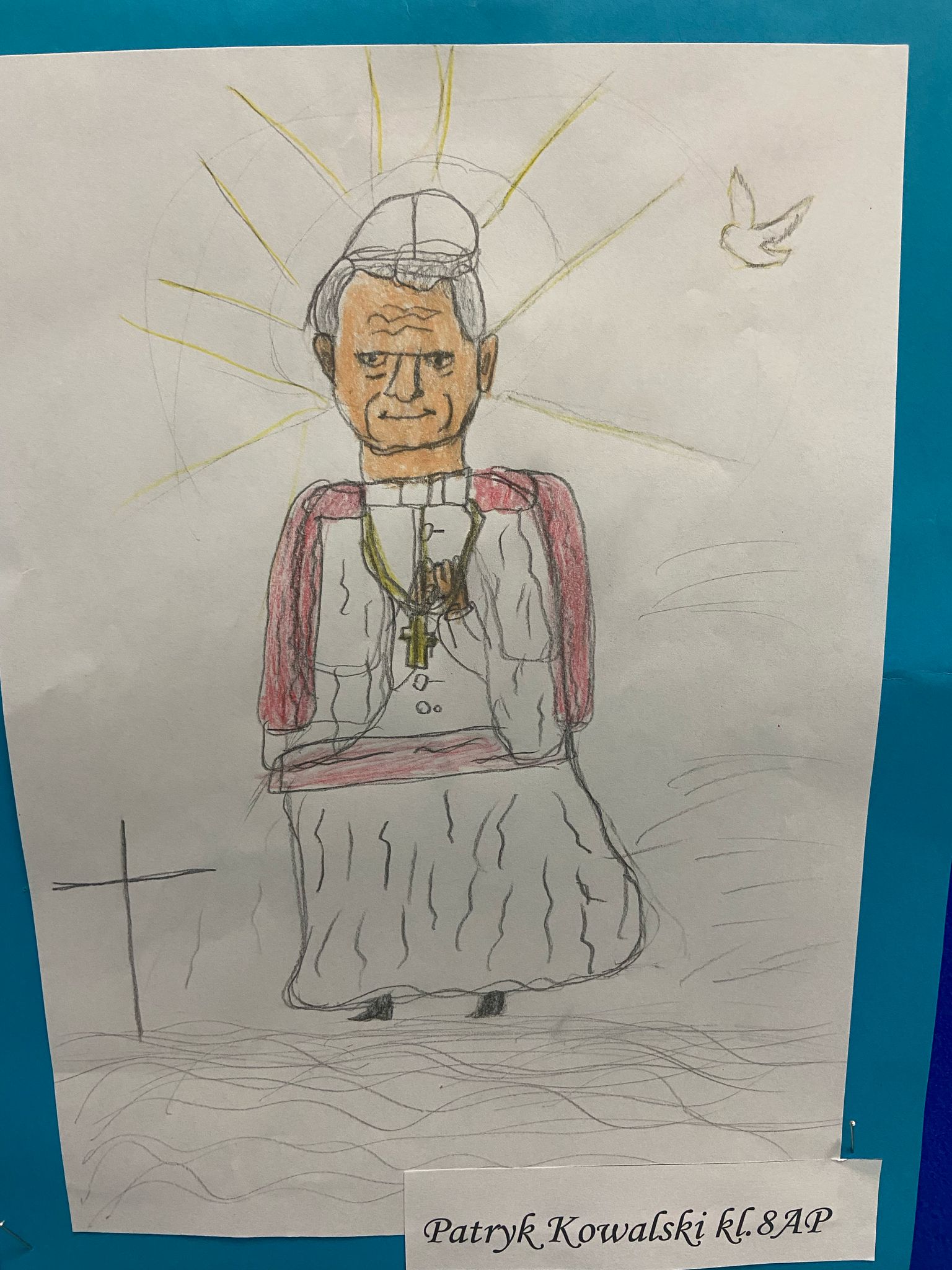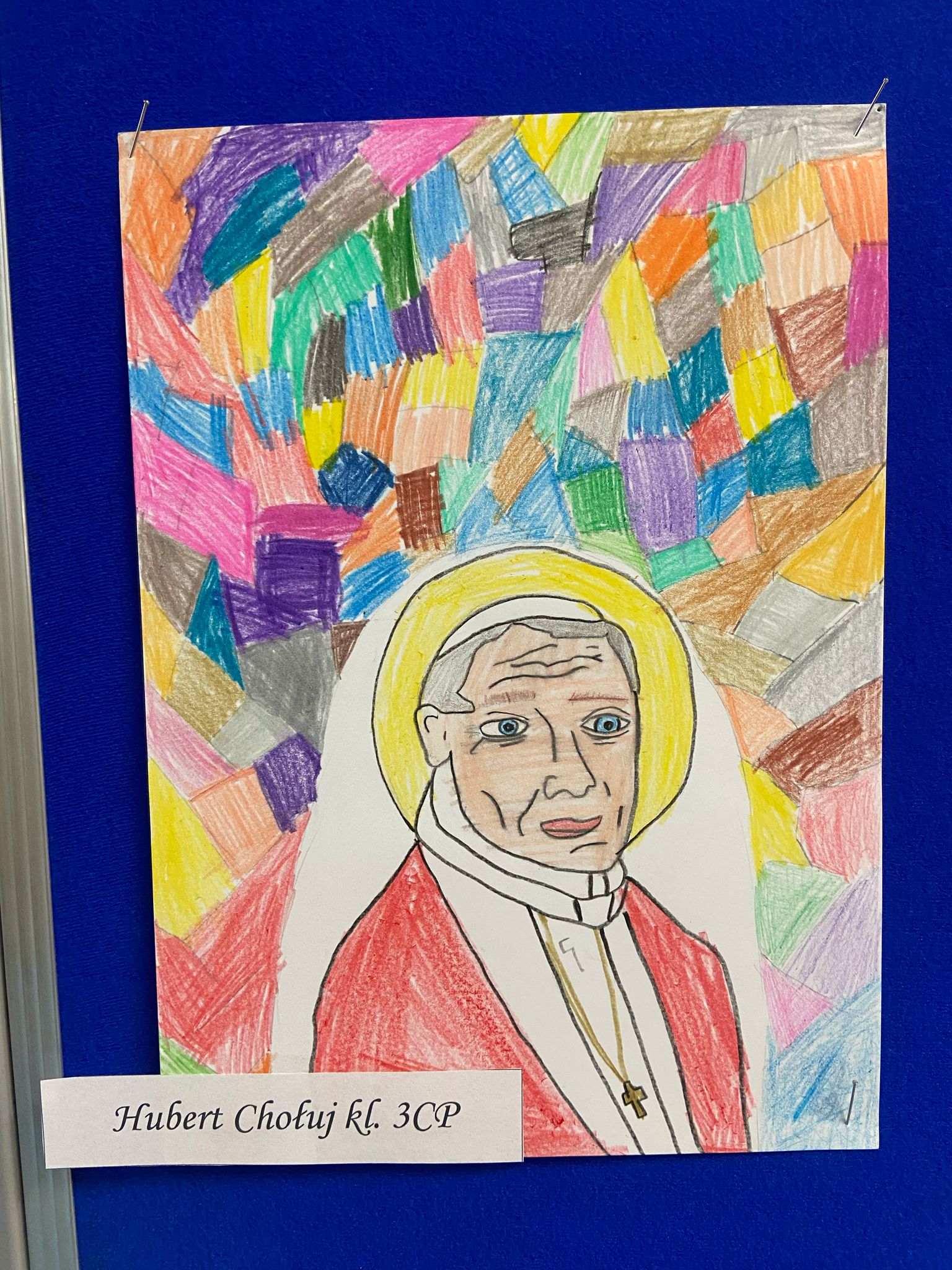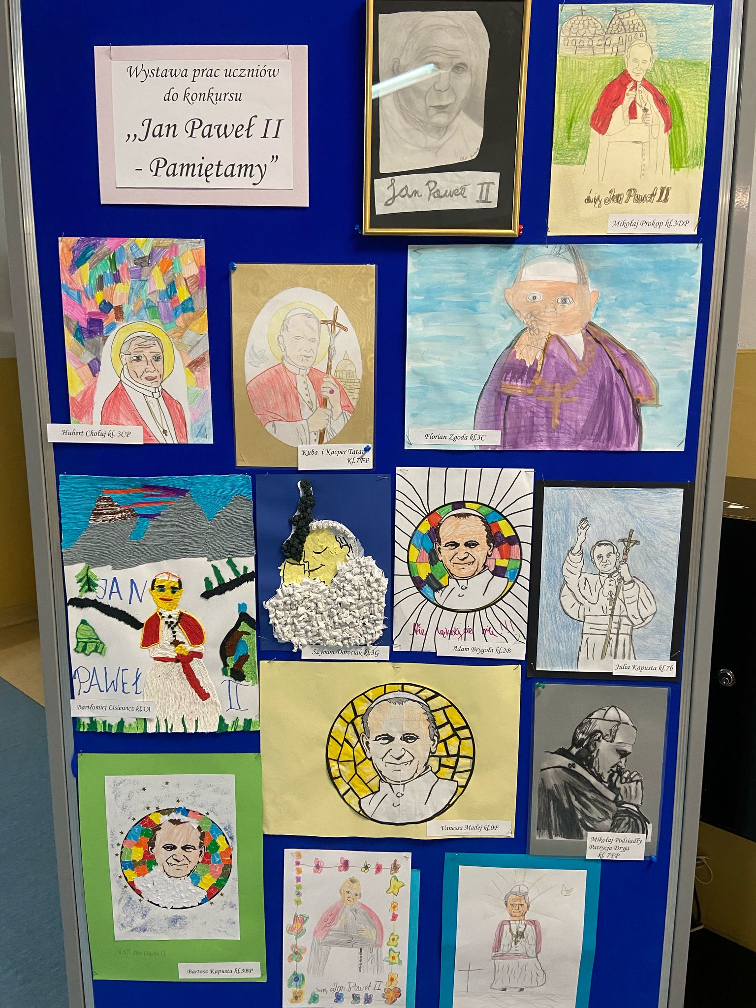 2 kwietnia o godzinie 21:37 dwadzieścia lat temu odszedł do domu Ojca nasz ukochany papież Jan Paweł II-PAMIĘTAMY. Edyta Orzechowska i Anna Figura z uczniami przygotowały kolaż ze zdjęciami papieża, a Edyta Ziomka i Edyta Orzechowska ogłosiły konkurs plastyczny – portret Jana Pawła II. Piękne prace uczniów zostały zaprezentowane na wystawie. Ogłoszenie wyników na apelu świątecznym