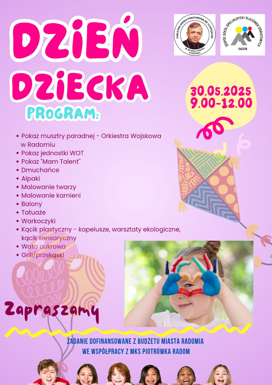 Serdecznie zapraszamy wszystkich uczniów oraz ich rodziny na wyjątkowe obchody Dnia Dziecka, które odbędą się w naszej szkole w dniu 30 maja 2025 r. (piątek) w godzinach 9:00–12:00.