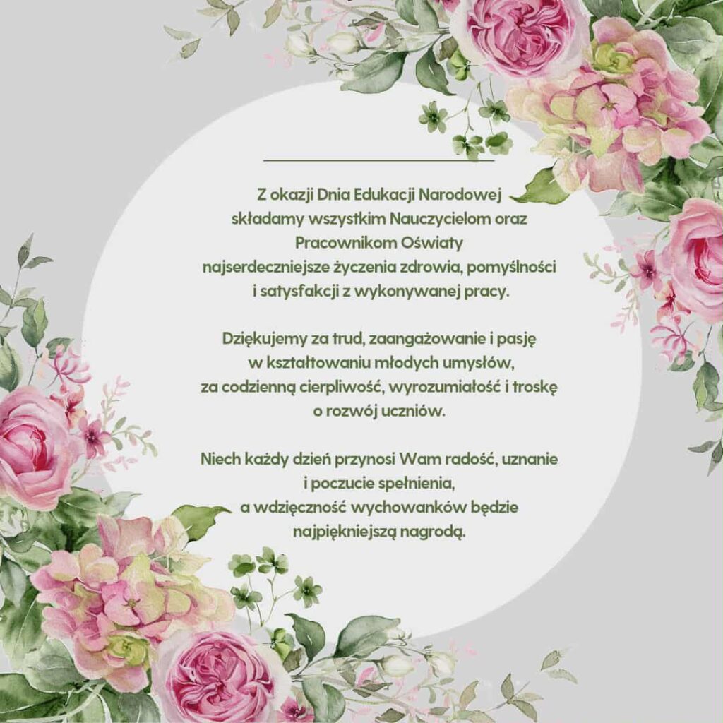 Niech każdy dzień przynosi Wam radość, uznanie i poczucie spełnienia, a wdzięczność wychowanków będzie najpiękniejszą nagrodą.