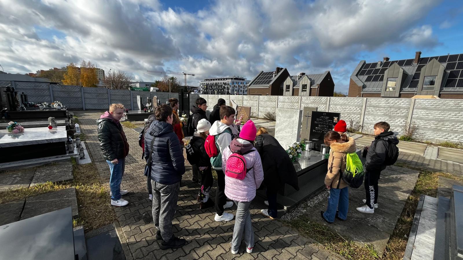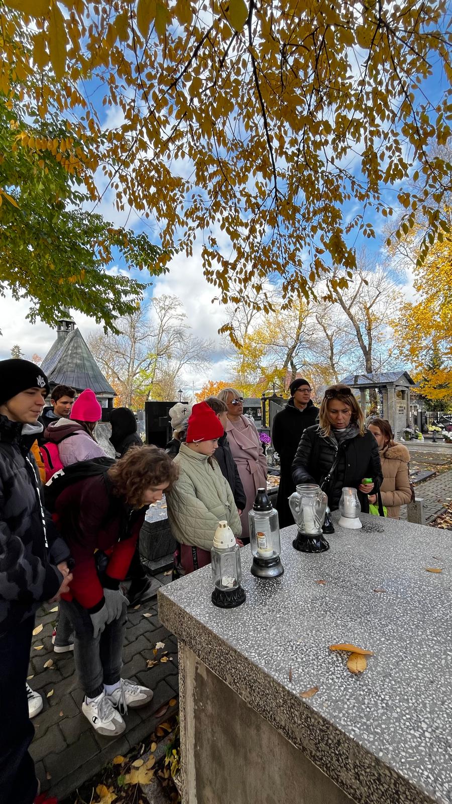 Wyjście na cmentarz było dla naszych uczniów chwilą zadumy i modlitwy za tych, których nie ma już wśród nas. Uczniowie wraz z nauczycielami pamiętali o zmarłych nauczycielach, znanych radomianach, biskupach, żołnierzach, strażakach oraz o pomordowanych w obozach. Zapalone znicze i cicha modlitwa stały się wyrazem wdzięczności i pamięci.