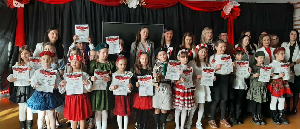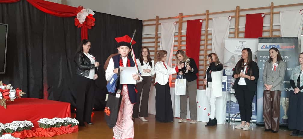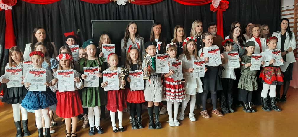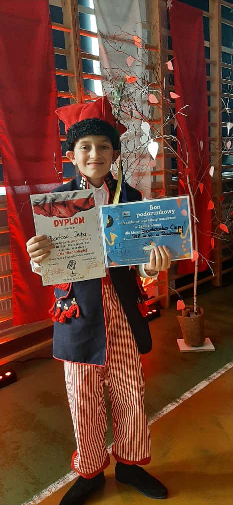 14.11.2025 r. Bartosz Ciupa z kl. 3 pod kierunkiem pani Iwony Ciury wziął udział w III Międszyszkolnym Konkursie Piosenki Patriotycznej ,,Dla Niepodległej” organizowanym przez PSP Nr 4 w Radomiu. Poziom konkursu był bardzo wyrownany. Serce radowało się słuchając piosenek patriotycznych wykonywanych przez najmłodszych uczniów szkół z Radomia i okolic. Uczeń naszej szkoły zdobył Nagrodę Dyrektora Szkoly i zaproszenie do udziału w warsztatach wokalnych. Gratulujemy!!!