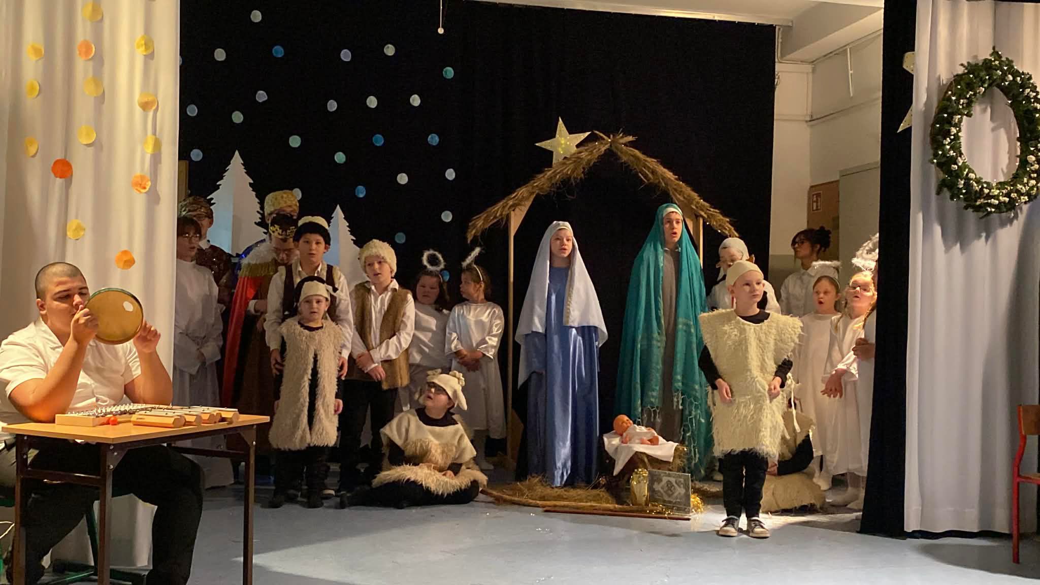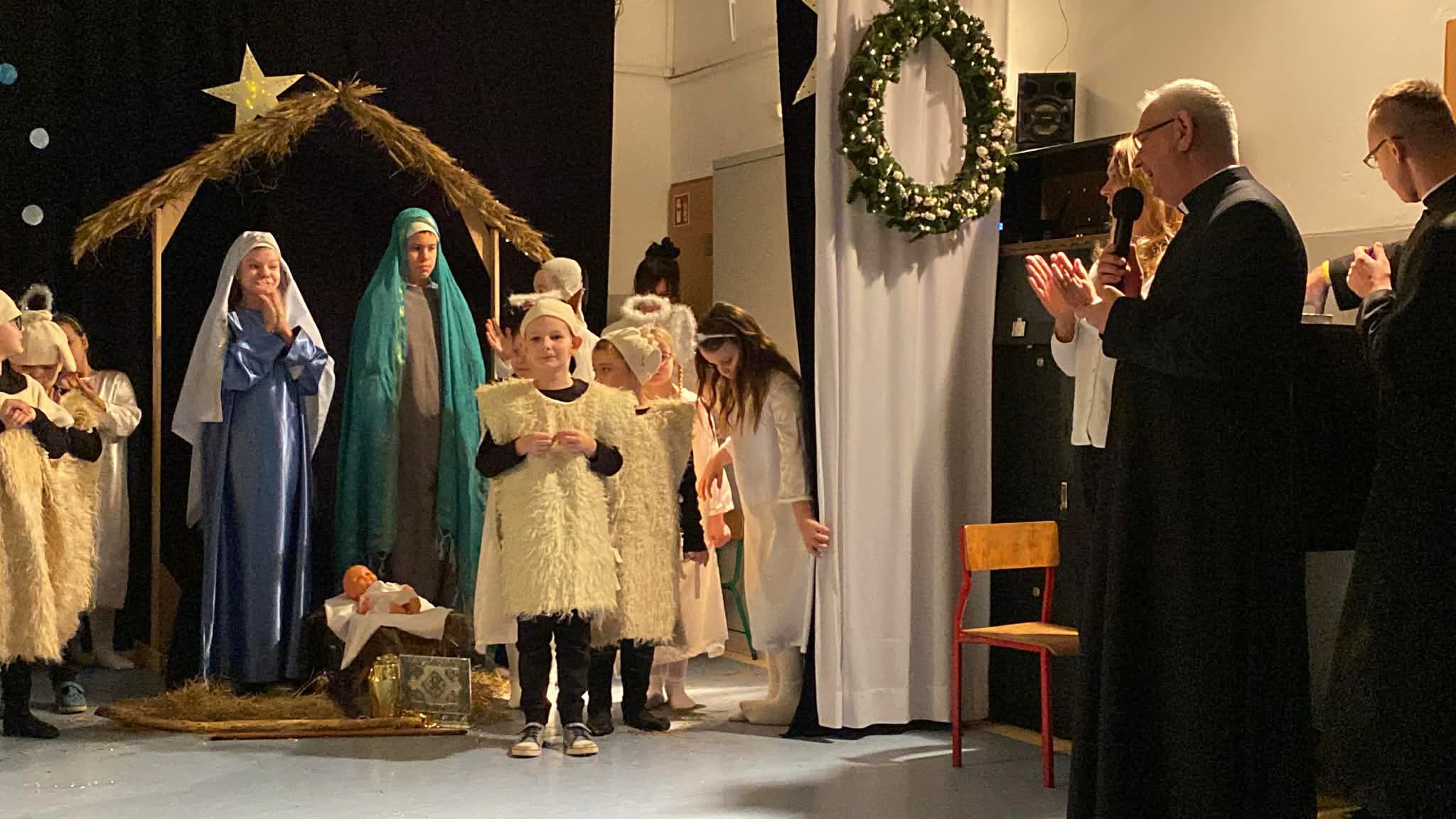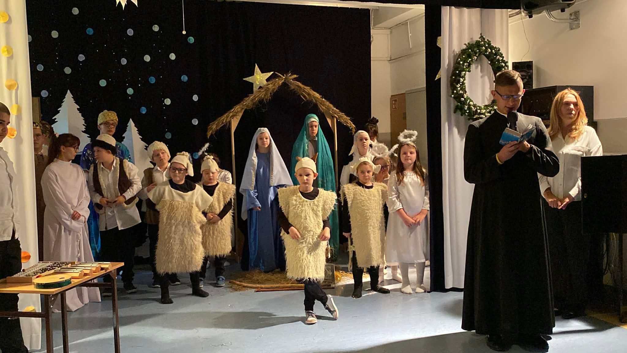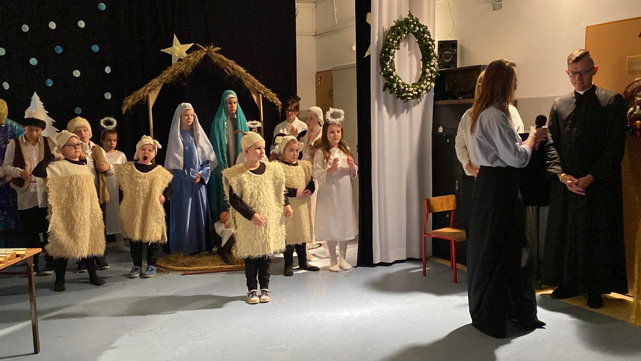 Młodzi artyści zaprezentowali tradycyjną historię Bożego Narodzenia, uświetnioną pięknym śpiewem kolęd i pastorałek. Ich zaangażowanie, gra aktorska oraz oprawa muzyczna zostały nagrodzone gromkimi brawami publiczności.