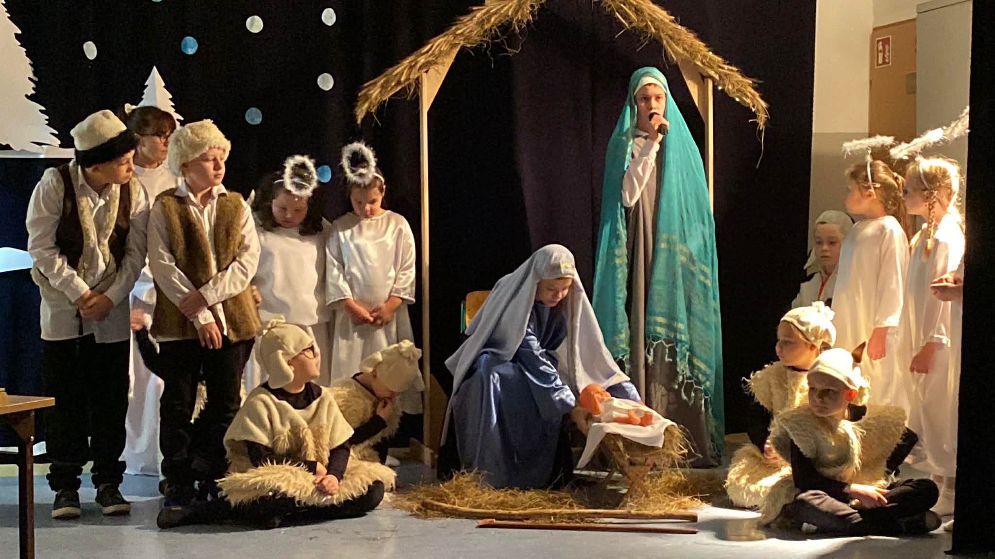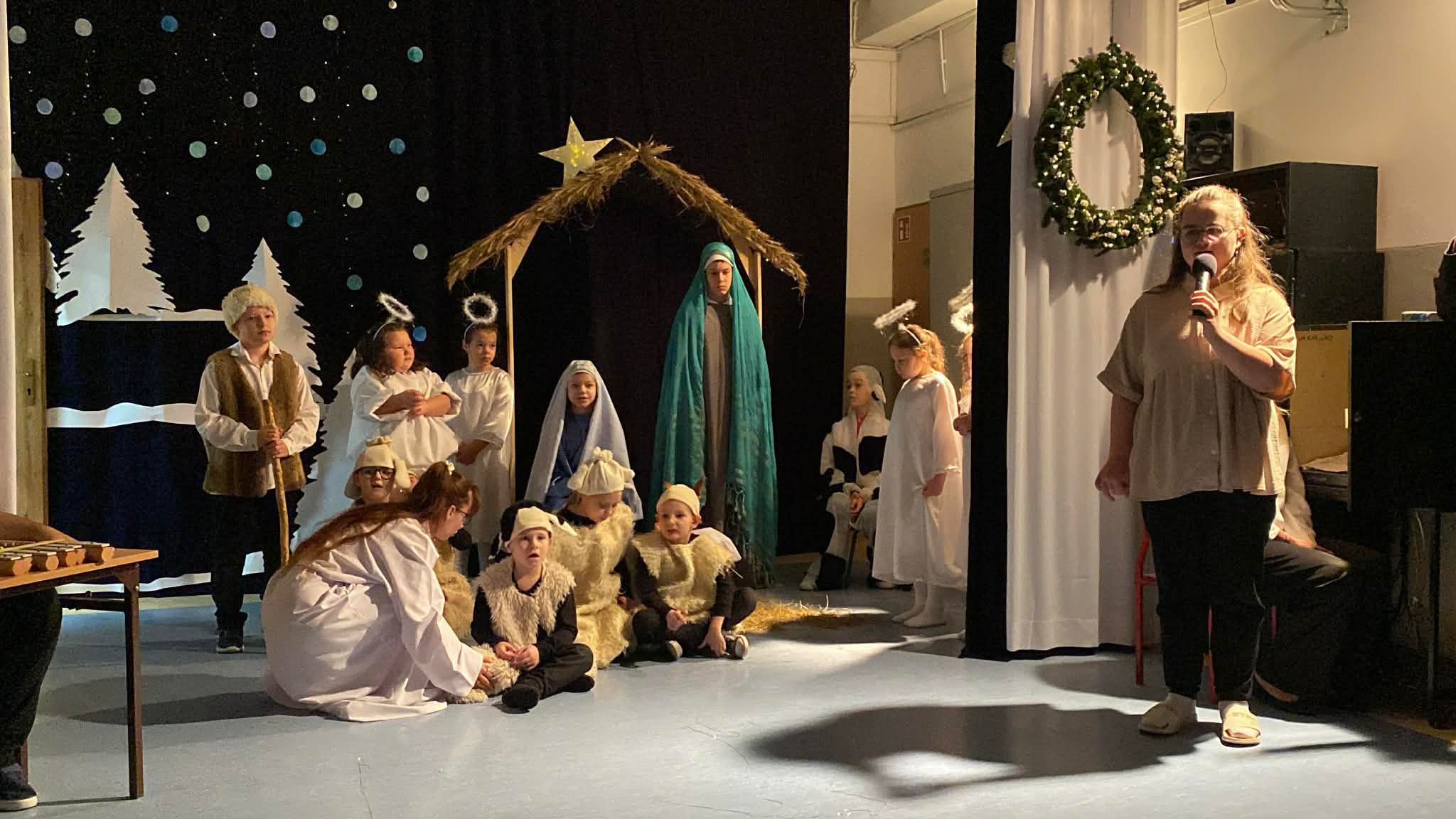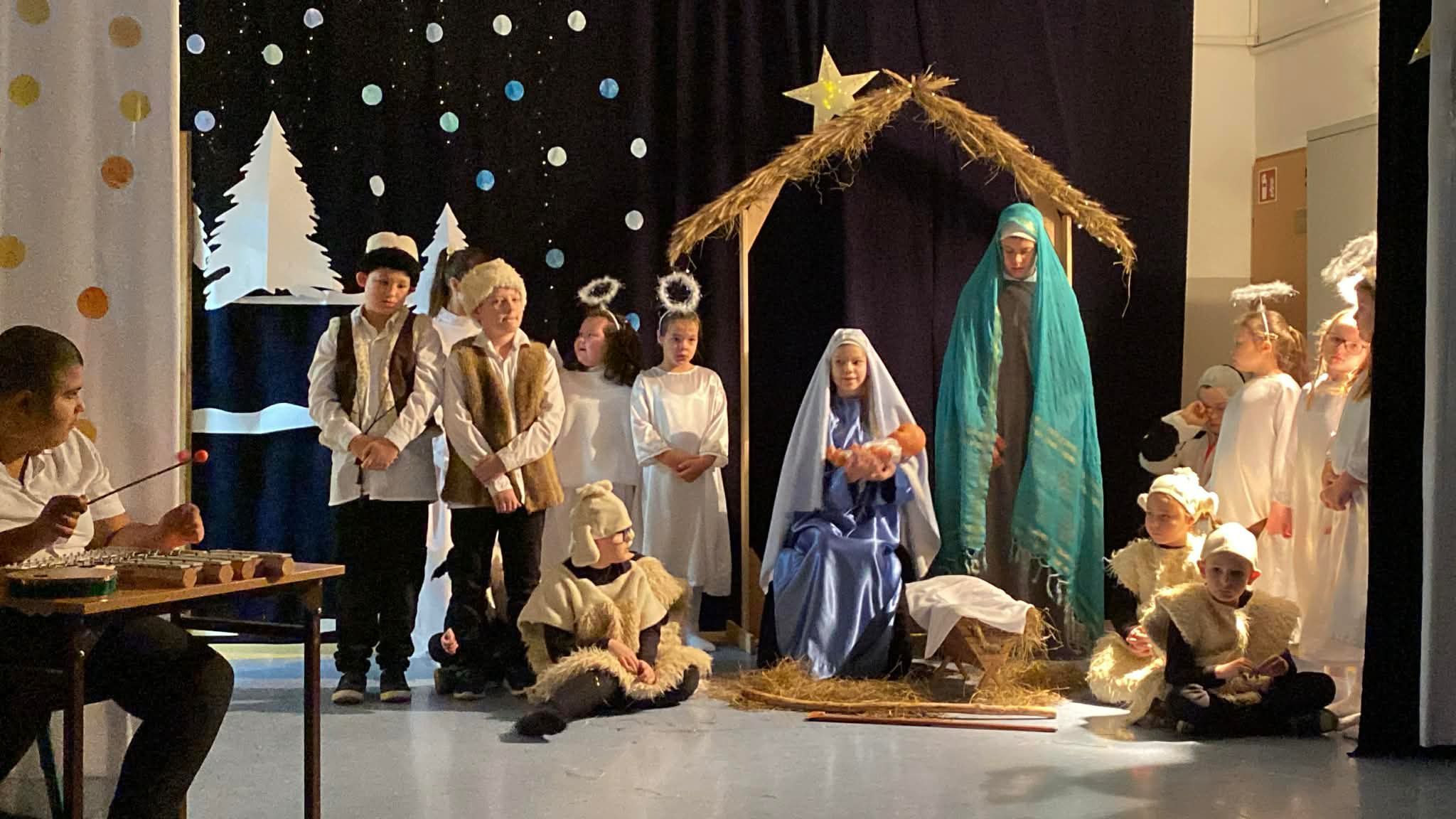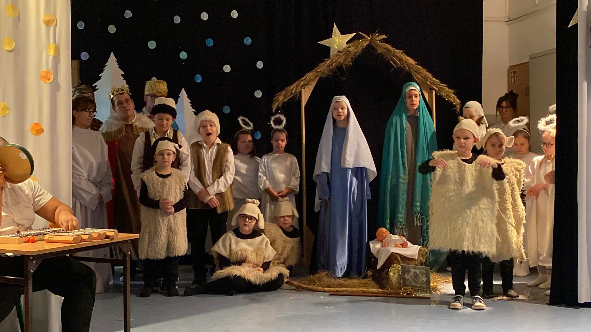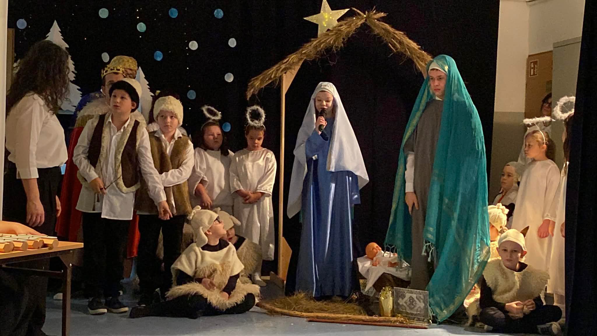 Młodzi artyści zaprezentowali tradycyjną historię Bożego Narodzenia, uświetnioną pięknym śpiewem kolęd i pastorałek. Ich zaangażowanie, gra aktorska oraz oprawa muzyczna zostały nagrodzone gromkimi brawami publiczności.