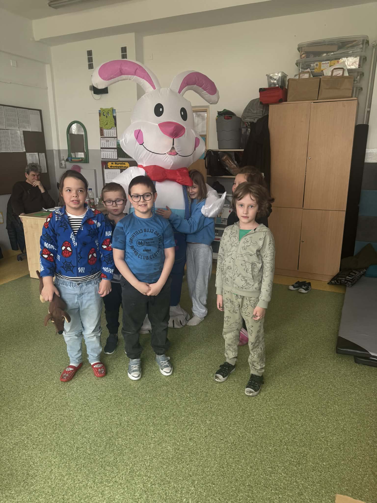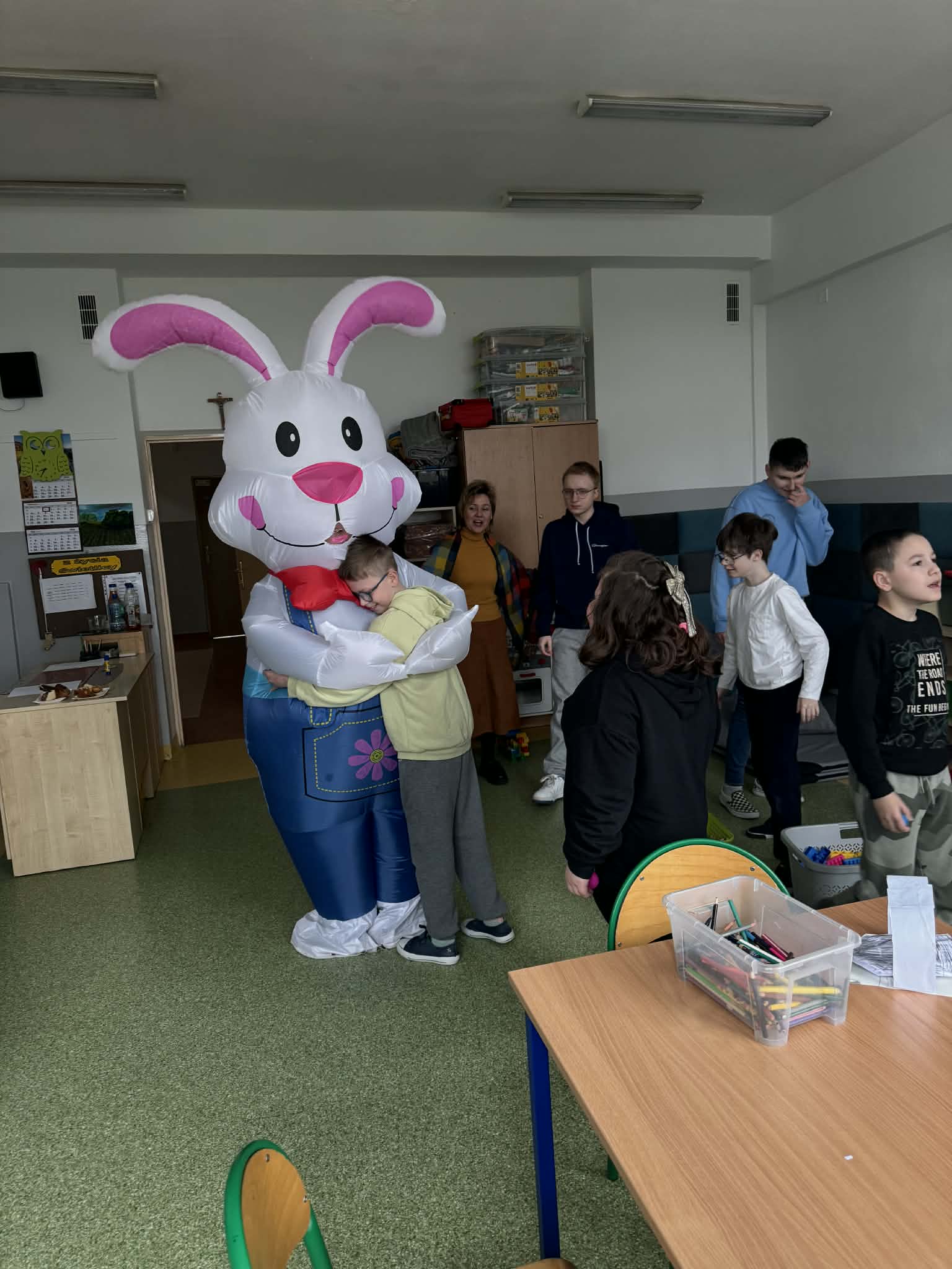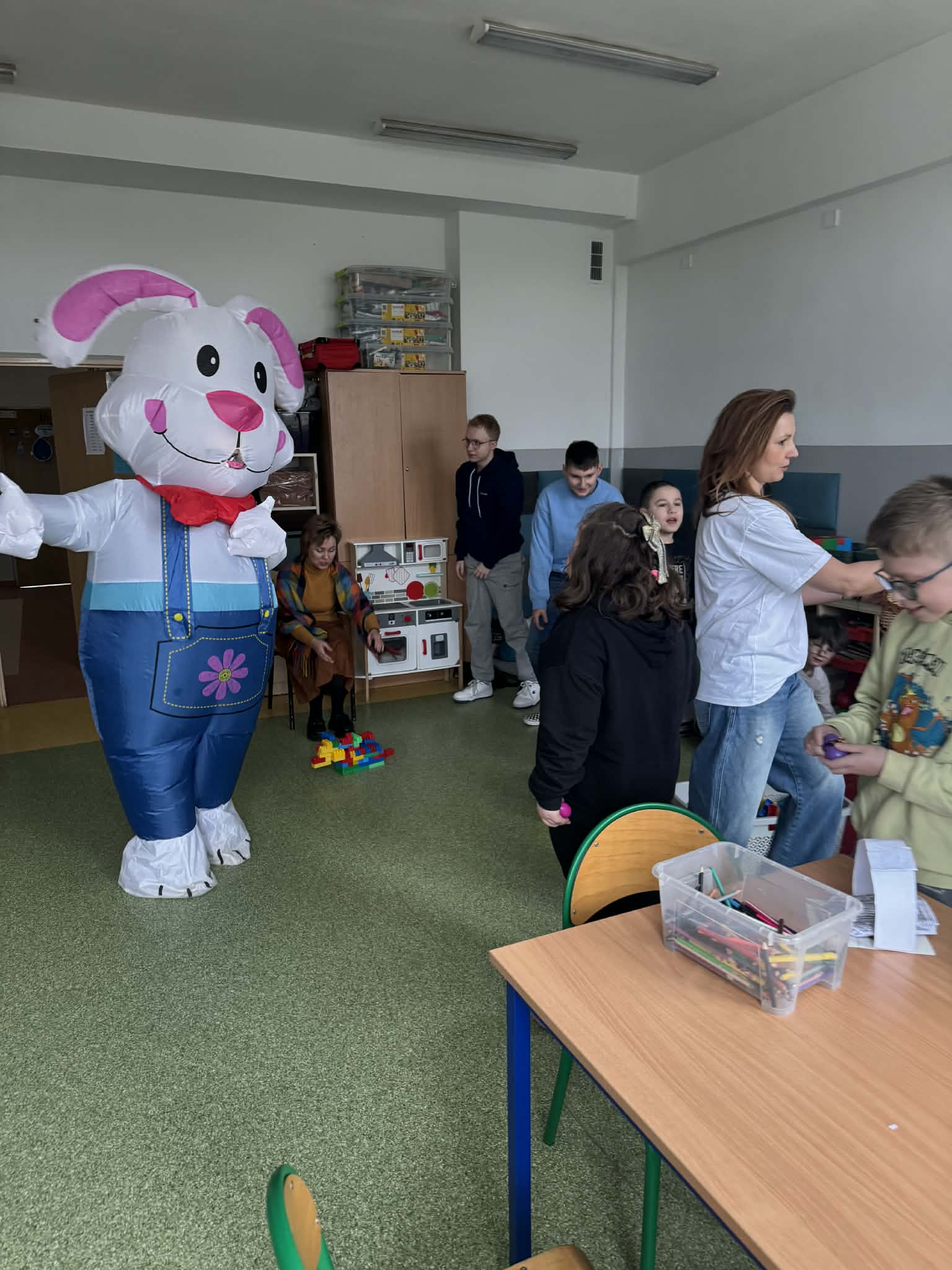 Odwiedził nas Zajączek Wielkanocny, który sprawił dzieciom ogromną niespodziankę. Podczas wizyty rozdawał kolorowe pisanki, wywołując uśmiechy na twarzach najmłodszych oraz wprowadzając wszystkich w świąteczny, wiosenny nastrój.