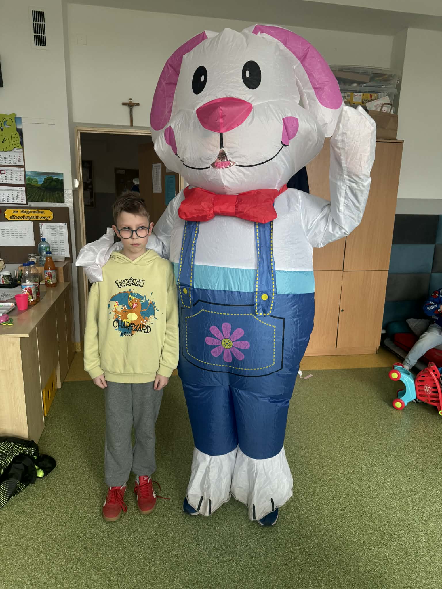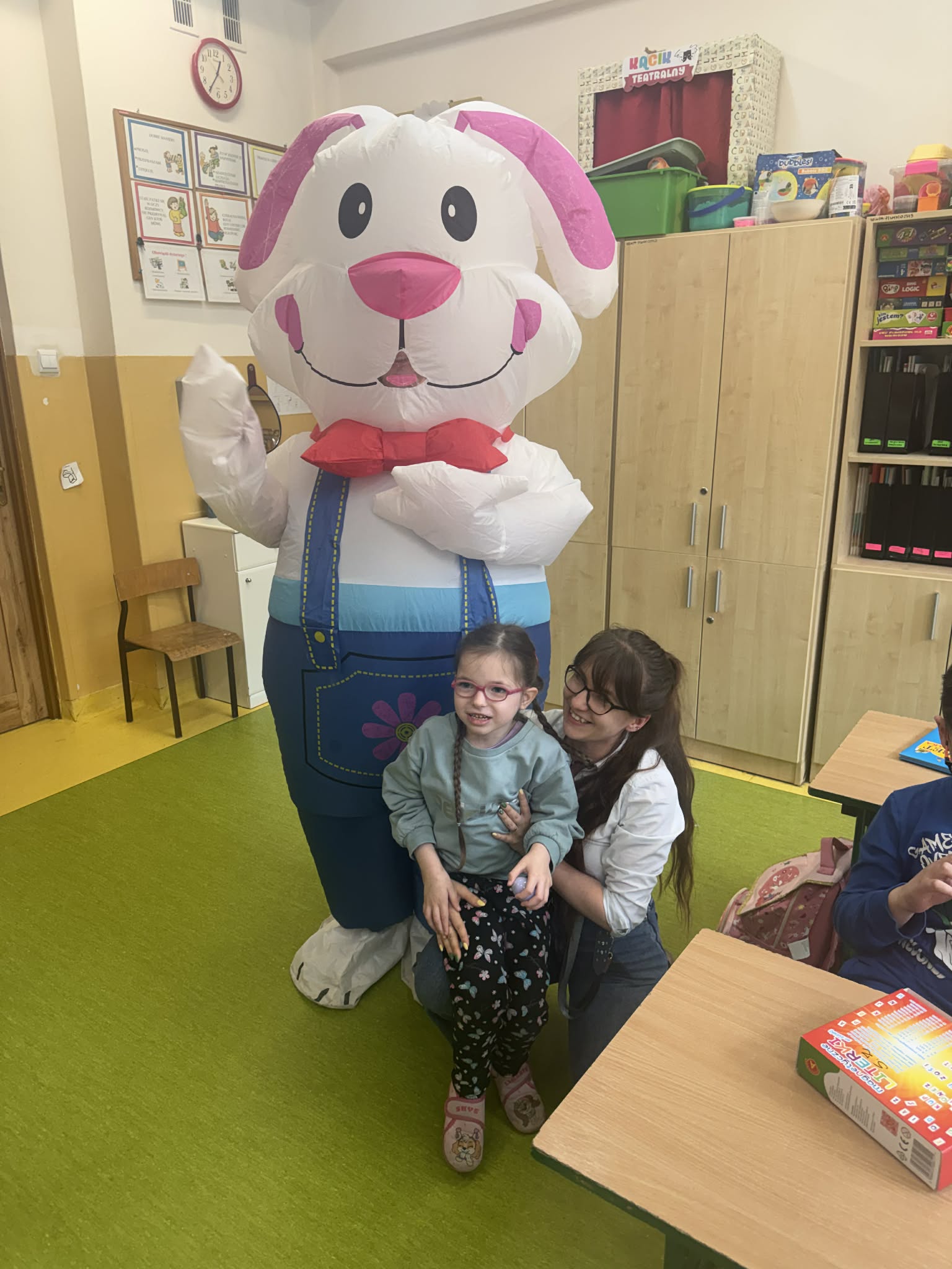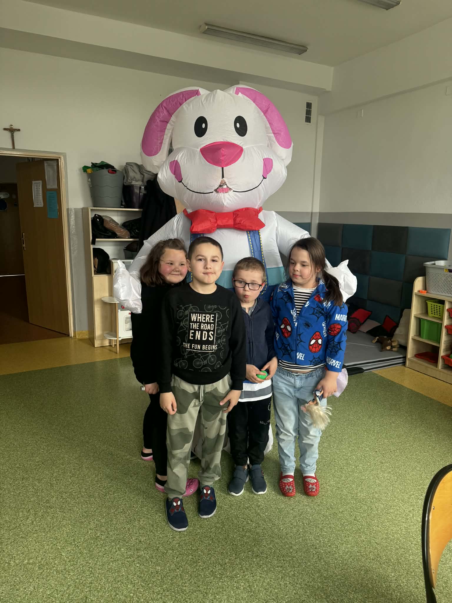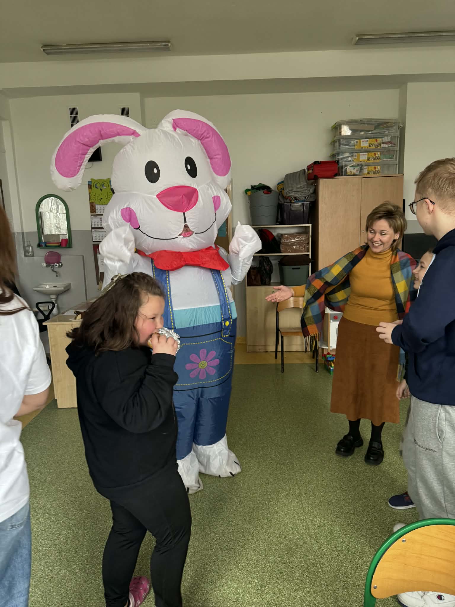 Odwiedził nas Zajączek Wielkanocny, który sprawił dzieciom ogromną niespodziankę. Podczas wizyty rozdawał kolorowe pisanki, wywołując uśmiechy na twarzach najmłodszych oraz wprowadzając wszystkich w świąteczny, wiosenny nastrój.