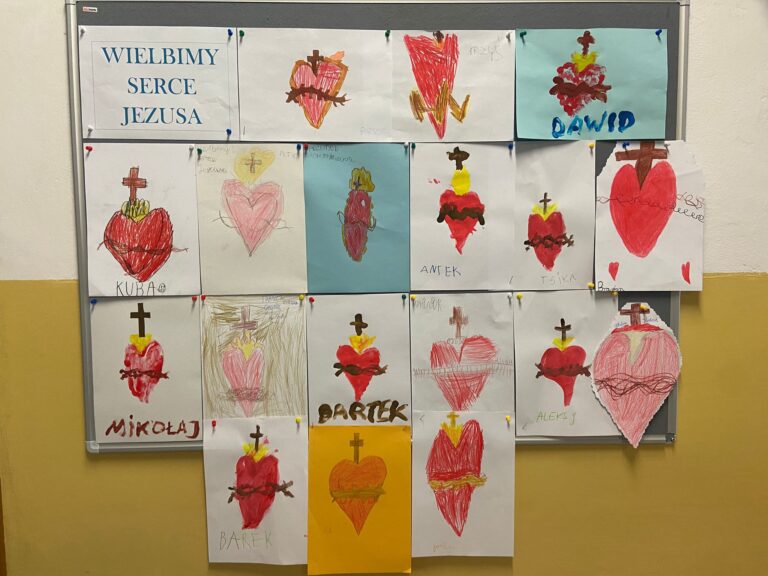 Czerwiec to miesiąc, w którym szczególnie wielbimy Serce ♥️ Jezusa. Uczniowie w ramach innowacji pedagogicznej z religii wykonali prace plastyczne dedykowane Sercu Jezusa ♥️